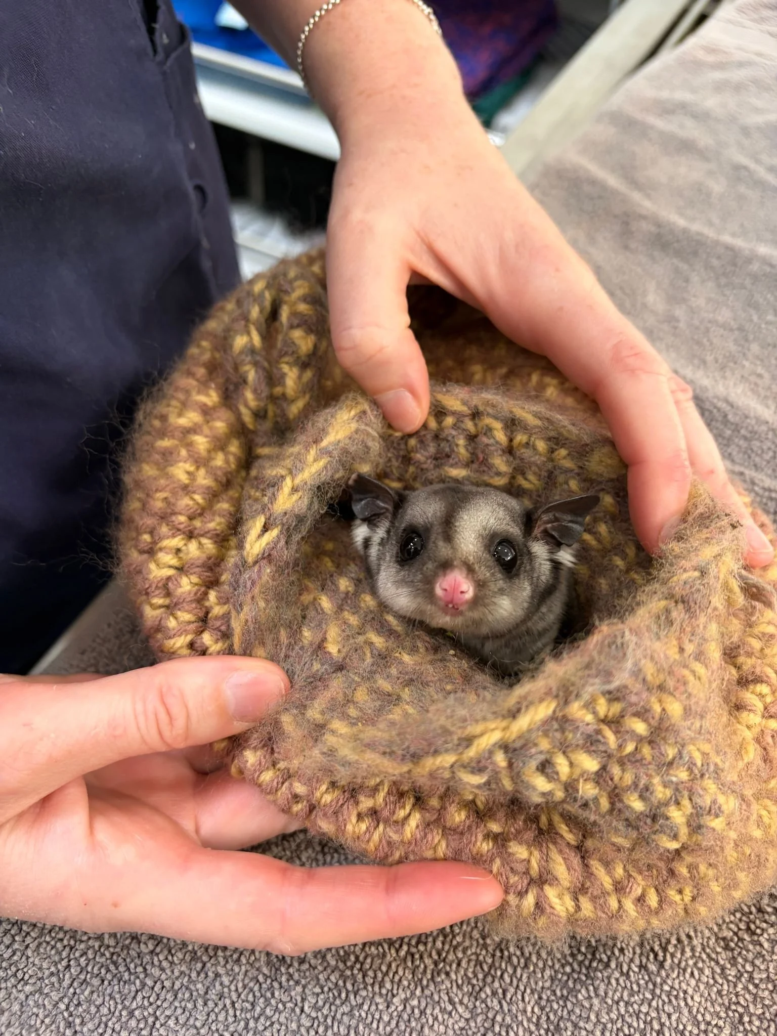 A young sugar glider received a general health check, and the good news is it is doing very well. With excellent care already provided, it is well on track for release back into the wild.